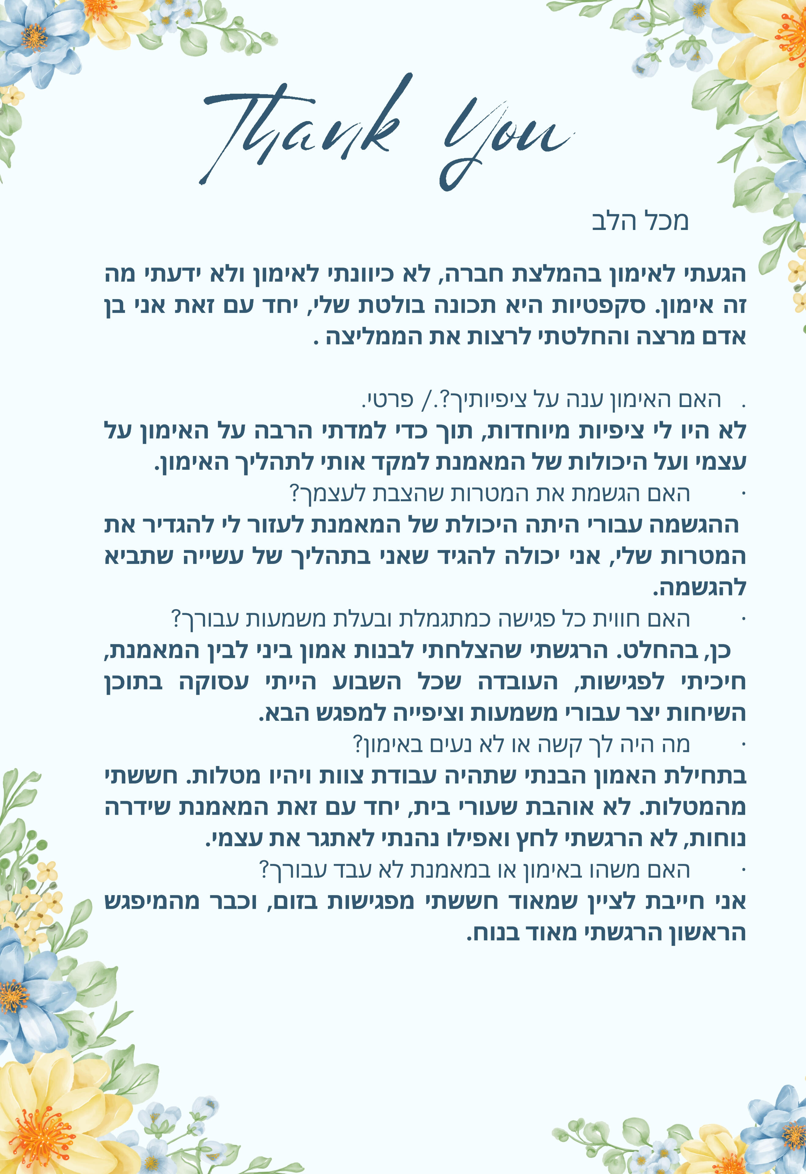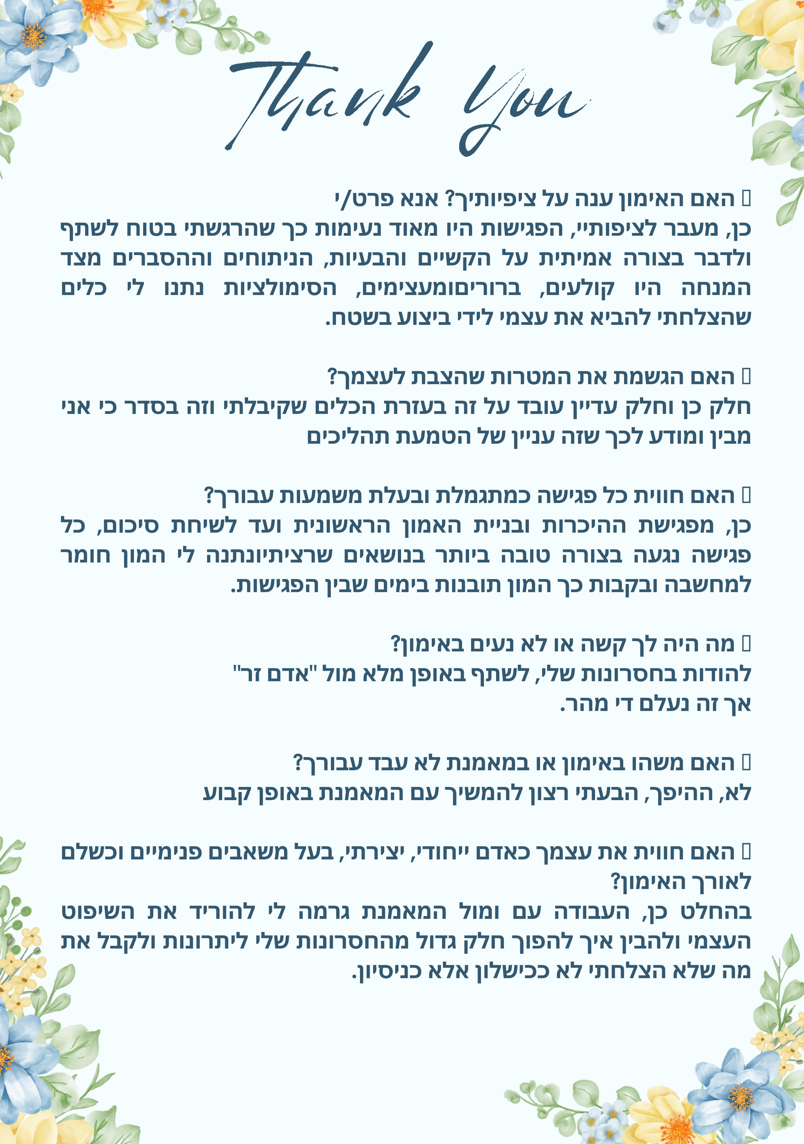 המטרה היא לחזק את תחושת הערך והבהירות הפנימית שלך, כך שתוכלי לחיות את חייך מתוך נוכחות, בחירה ונשיות שלא מתנצלת